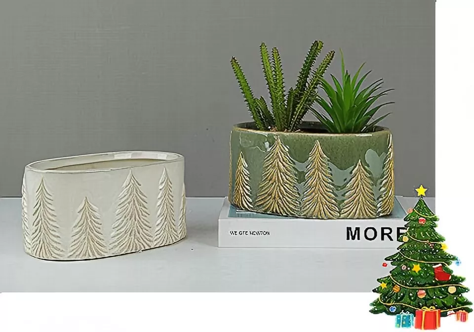 এমবসড ক্রিসমাস পাইন ফুলদানি 5 আকারে (মিনি টেবিলটপ থেকে বড় ফ্লোর-স্ট্যান্ডিং পর্যন্ত) এবং তিনটি রঙে পাওয়া যায়: সবুজ, অফ-হোয়াইট এবং বাদামি। স্বতন্ত্রভাবে বা সংমিশ্রণে প্রদর্শিত হোক না কেন, তারা পুরোপুরি বিভিন্ন স্থানের প্রয়োজনীয়তা অনুসারে।